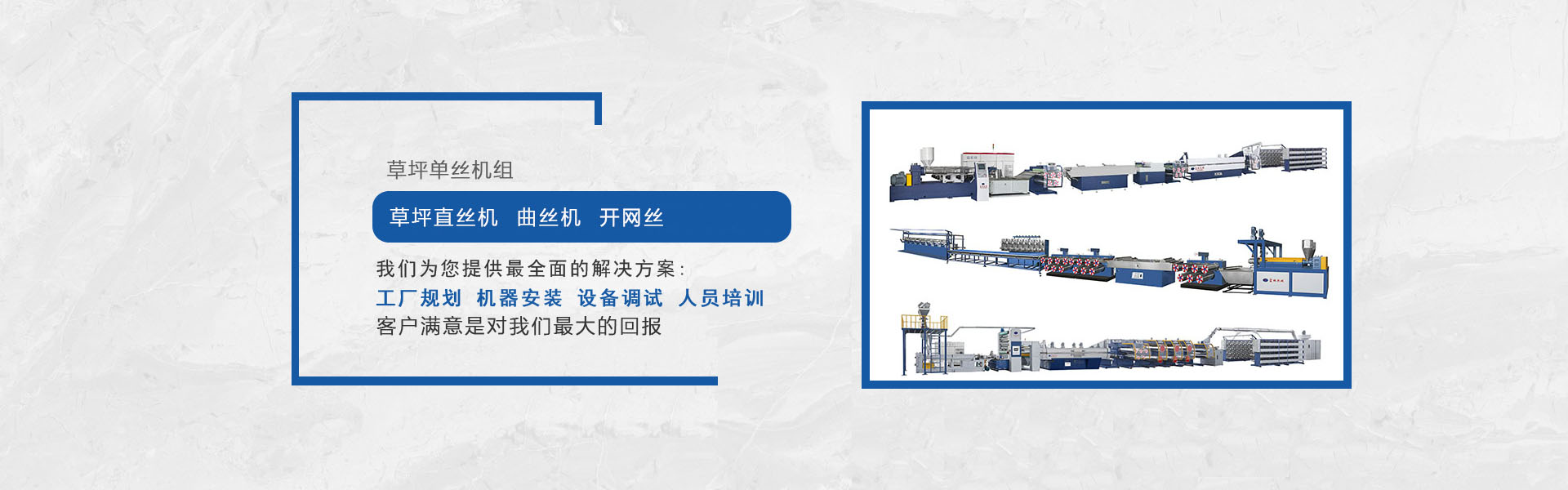我司是專(zhuān)業(yè)生產(chǎn)塑料擠出圓絲、平膜扁絲機(jī)組等及其聚酯托幕線(xiàn)等配套附件、部件的專(zhuān)業(yè)化、正規(guī)化的企業(yè),公司集行業(yè)專(zhuān)家的豐富知識(shí),多年積累的經(jīng)驗(yàn),結(jié)合國(guó)外同行先進(jìn)技術(shù),研發(fā)制造出系列圓絲擠出機(jī)組,在主要技術(shù)指標(biāo)和性能上已處領(lǐng)先水平,我們正不斷優(yōu)化管理,強(qiáng)化細(xì)節(jié),使之能更好地為廣大用戶(hù)提供從技術(shù)、制造到工藝的全方位服務(wù)。
